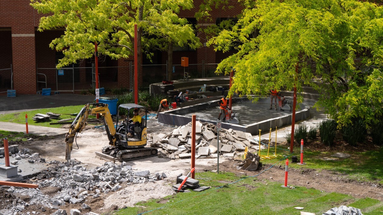 While work was underway on the Indigenous Learning Circles, pop up outdoor galleries featuring Indigenous student artwork beautified the construction fences.