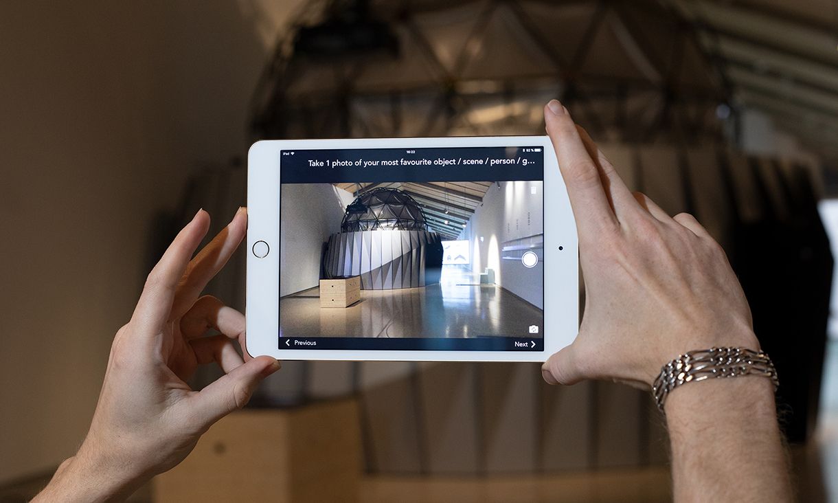 Visitors are invited to take a photo of their favourite part of the exhibit or experience in muse – a feature tested at EPFL’s Artlab. Credit: Sarah Kenderdine.