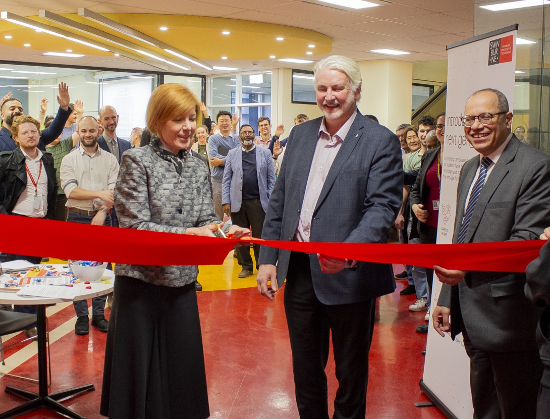 Swinburne Vice-Chancellor and President Professor Pascale Quester was joined by School of Engineering Dean Professor Emad Gad and Trades and Engineering Technologies Director Bryan Ornsby for a ribbon cutting ceremong to officially open the new labs.