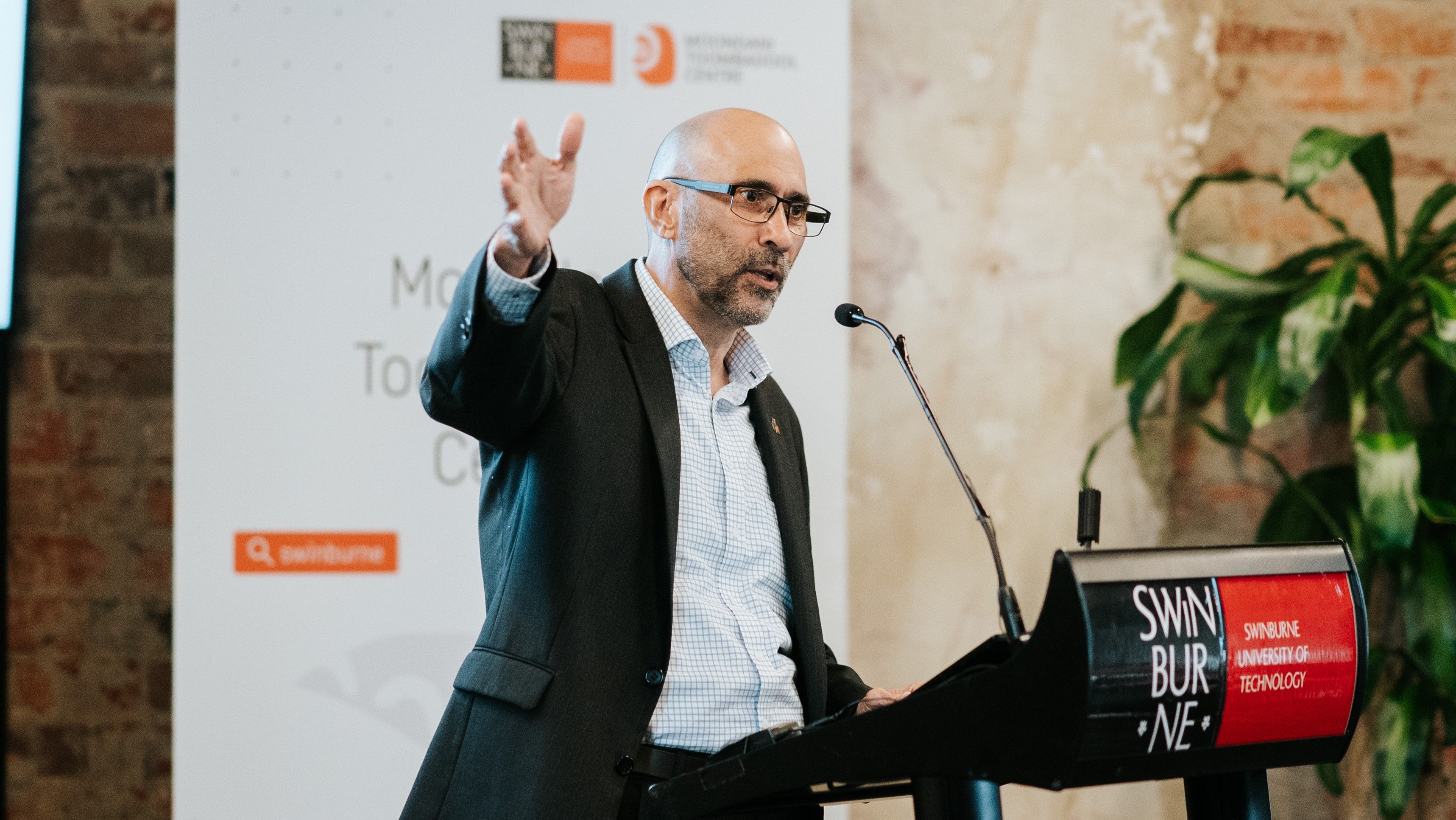 Ian Hamm delivering the 2023 Swinburne Annual Barak Wonga Oration.