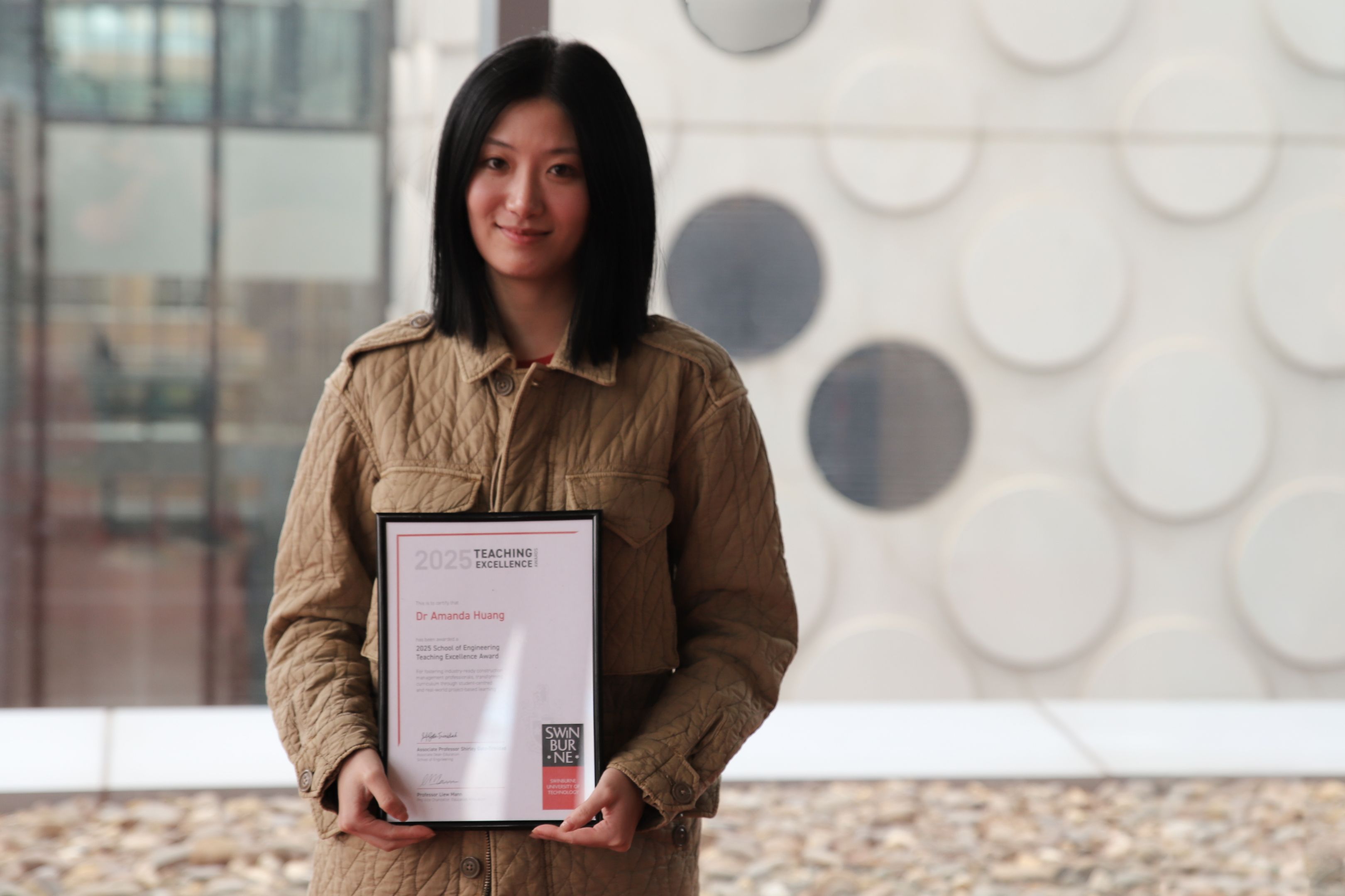 Dr Amanda Huang, Lecturer in Construction Management, was also recognised for fostering industry-ready construction management professionals and transformed curriculum through student-centred and real-world project-based learning.