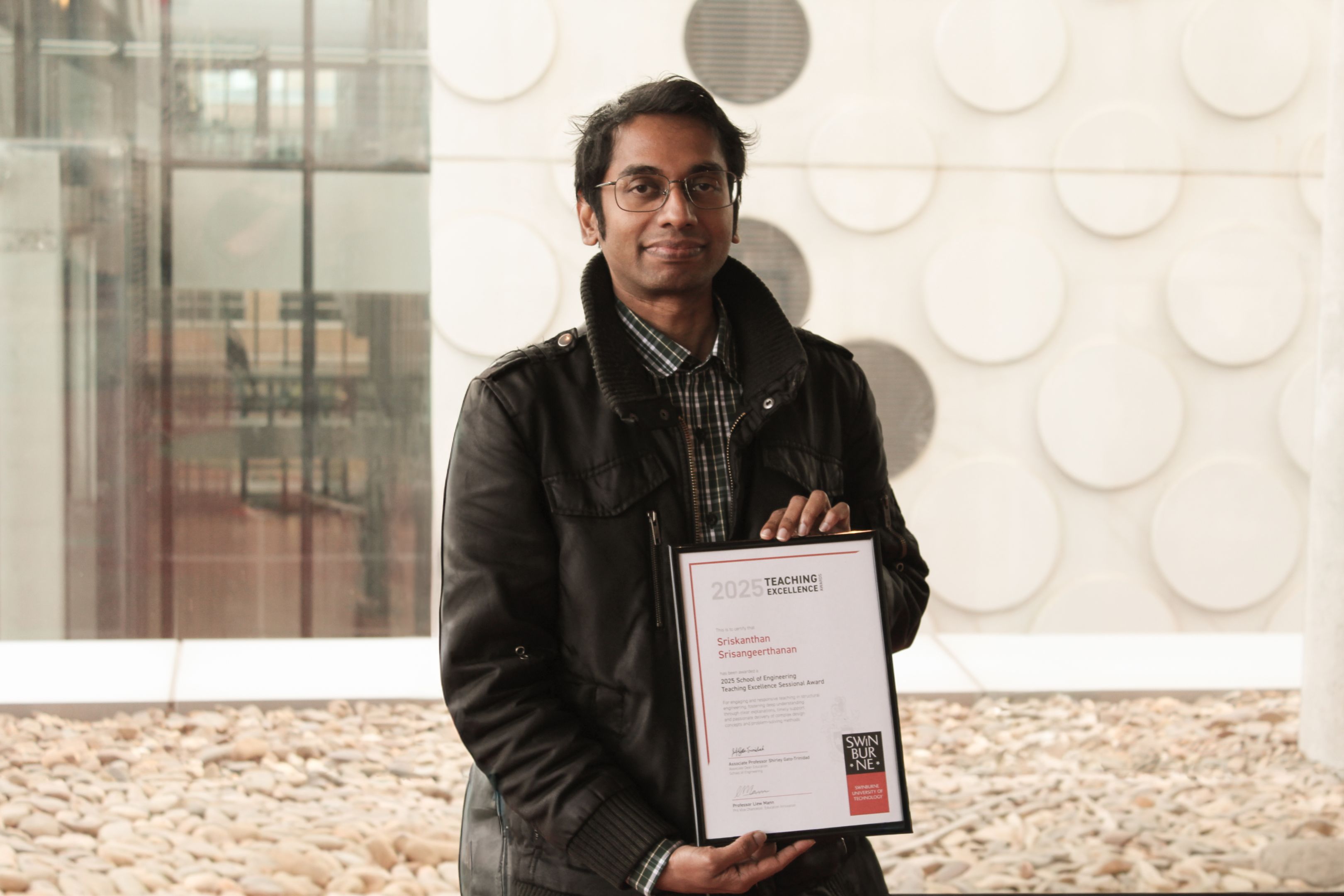 Sriskanthan Srisangeerthanan has been awarded for using engaging and responsive teaching practices in structural engineering. These practices fostered deep understanding through clear explanations, timely support and passionate delivery of complex design concepts and problem-solving methods.